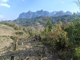 Denis ne va pas bien loin étant donné la présence de gaz, une nouvelle fois. Nous reprenons le chemin du retour et bénéficions d’une vue superbe sur le massif de Chiang Dao.
